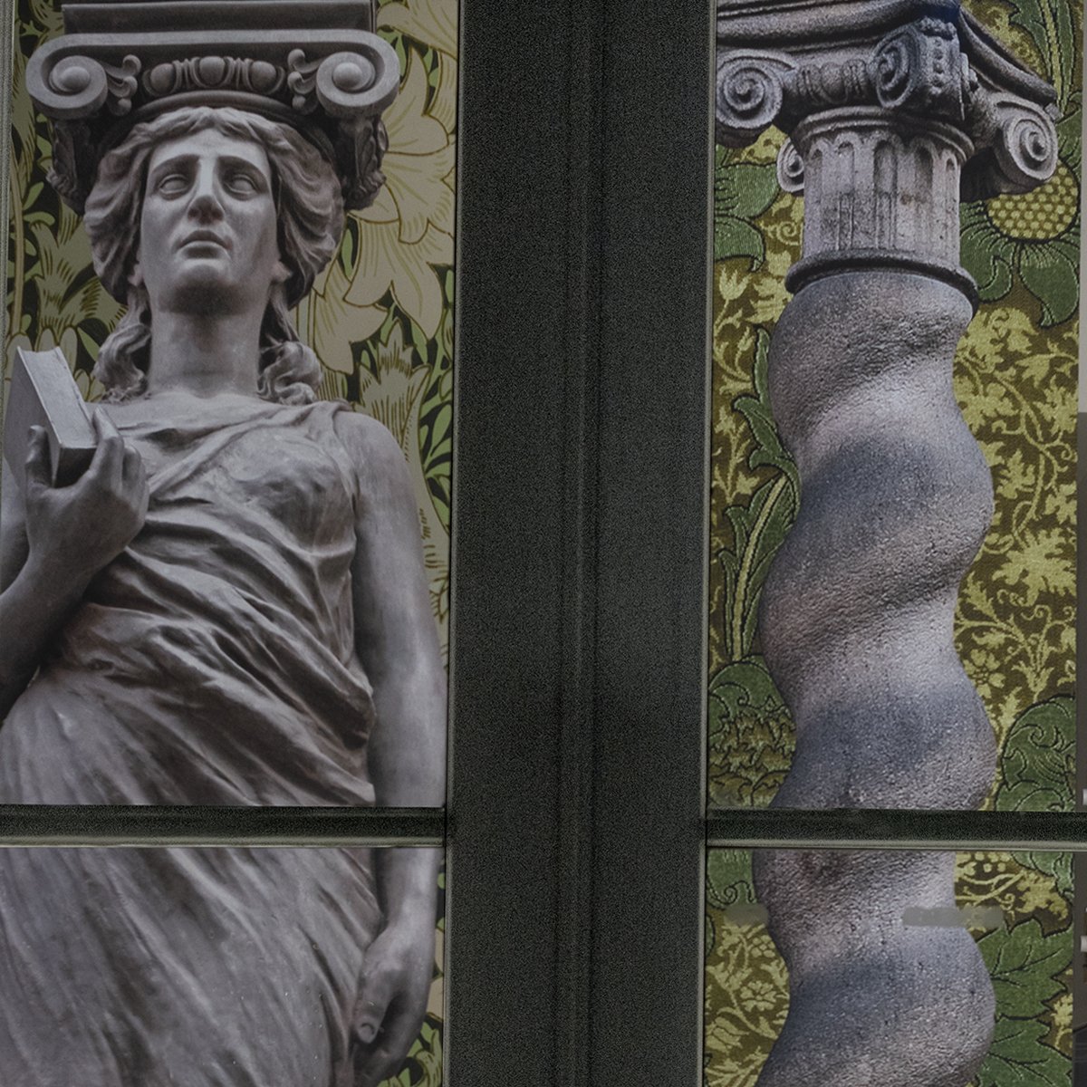 Virginia Maksymowicz’s installation considers the resilience and strength of the female figure in architecture by using the imagery of caryatids, which appear effortless in their supportive roles.